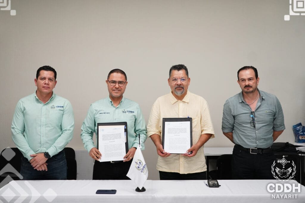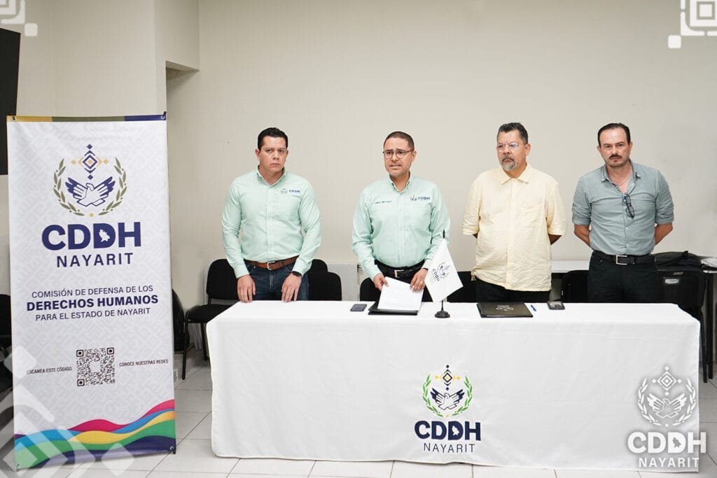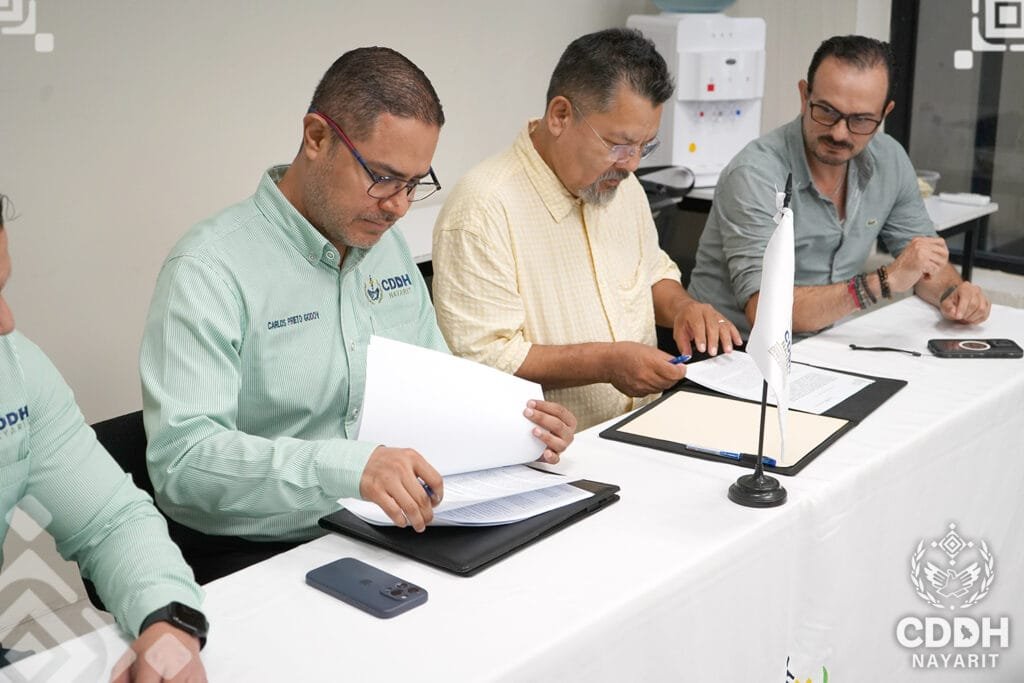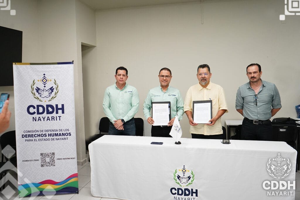 Este miรฉrcoles la ๐—–๐—ผ๐—บ๐—ถ๐˜€๐—ถ๐—ผฬ๐—ป ๐—ฑ๐—ฒ ๐——๐—ฒ๐—ณ๐—ฒ๐—ป๐˜€๐—ฎ ๐—ฑ๐—ฒ ๐—น๐—ผ๐˜€ ๐——๐—ฒ๐—ฟ๐—ฒ๐—ฐ๐—ต๐—ผ๐˜€ ๐—›๐˜‚๐—บ๐—ฎ๐—ป๐—ผ๐˜€ ๐—ฝ๐—ฎ๐—ฟ๐—ฎ ๐—ฒ๐—น ๐—˜๐˜€๐˜๐—ฎ๐—ฑ๐—ผ ๐—ฑ๐—ฒ ๐—ก๐—ฎ๐˜†๐—ฎ๐—ฟ๐—ถ๐˜, ๐—ฟ๐—ฒ๐—ฝ๐—ฟ๐—ฒ๐˜€๐—ฒ๐—ป๐˜๐—ฎ๐—ฑ๐—ฎ ๐—ฝ๐—ผ๐—ฟ ๐˜€๐˜‚ ๐—ฝ๐—ฟ๐—ฒ๐˜€๐—ถ๐—ฑ๐—ฒ๐—ป๐˜๐—ฒ, ๐—ฒ๐—น ๐——๐—ผ๐—ฐ๐˜๐—ผ๐—ฟ ๐—–๐—ฎ๐—ฟ๐—น๐—ผ๐˜€ ๐—”๐—น๐—ฏ๐—ฒ๐—ฟ๐˜๐—ผ ๐—ฃ๐—ฟ๐—ถ๐—ฒ๐˜๐—ผ ๐—š๐—ผ๐—ฑ๐—ผ๐˜†, ๐—ณ๐—ถ๐—ฟ๐—บ๐—ผฬ ๐˜‚๐—ป ๐—ฐ๐—ผ๐—ป๐˜ƒ๐—ฒ๐—ป๐—ถ๐—ผ ๐—ฑ๐—ฒ ๐—ฐ๐—ผ๐—น๐—ฎ๐—ฏ๐—ผ๐—ฟ๐—ฎ๐—ฐ๐—ถ๐—ผฬ๐—ป ๐—ฐ๐—ผ๐—ป ๐—น๐—ฎ ๐—–๐—ผ๐—บ๐—ถ๐˜€๐—ถ๐—ผฬ๐—ป ๐—˜๐˜€๐˜๐—ฎ๐˜๐—ฎ๐—น ๐—ฑ๐—ฒ ๐—–๐—ผ๐—ป๐—ฐ๐—ถ๐—น๐—ถ๐—ฎ๐—ฐ๐—ถ๐—ผฬ๐—ป ๐˜† ๐—”๐—ฟ๐—ฏ๐—ถ๐˜๐—ฟ๐—ฎ๐—ท๐—ฒ ๐— ๐—ฒฬ๐—ฑ๐—ถ๐—ฐ๐—ผ ๐—ฝ๐—ฎ๐—ฟ๐—ฎ ๐—ฒ๐—น ๐—˜๐˜€๐˜๐—ฎ๐—ฑ๐—ผ ๐—ฑ๐—ฒ ๐—ก๐—ฎ๐˜†๐—ฎ๐—ฟ๐—ถ๐˜, ๐—ฟ๐—ฒ๐—ฝ๐—ฟ๐—ฒ๐˜€๐—ฒ๐—ป๐˜๐—ฎ๐—ฑ๐—ฎ ๐—ฝ๐—ผ๐—ฟ ๐˜€๐˜‚ ๐—–๐—ผ๐—บ๐—ถ๐˜€๐—ถ๐—ผ๐—ป๐—ฎ๐—ฑ๐—ผ ๐— ๐—ฒฬ๐—ฑ๐—ถ๐—ฐ๐—ผ, ๐——๐—ฟ. ๐—–๐—ฒฬ๐˜€๐—ฎ๐—ฟ ๐—˜๐—ป๐—ฟ๐—ถ๐—พ๐˜‚๐—ฒ ๐—”๐—ฟ๐—ถ๐—ฎ๐˜€ ๐—–๐—ฎ๐˜€๐˜๐—ถ๐—น๐—น๐—ผ, con este convenio se da formalidad y compromiso a la colaboraciรณn que ya desde antes se venรญa dando entre las diferentes รกreas que componen la CDDH Nayarit y la CECAMED.