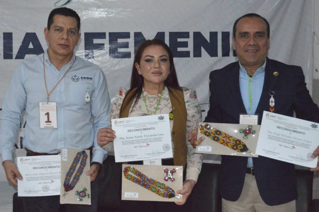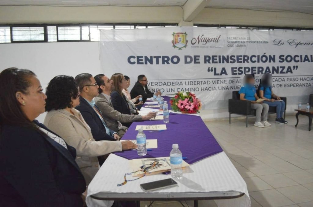 Participaron en la moderación del panel la Dip. Juana Nataly Tizcareño Lara, el Dip. Jorge Salvador Álvarez López, el Mtro. Juan Miguel Salcedo Rosales, Secretario Ejecutivo de la CDDH Nayarit y mujeres privadas de la libertad que actualmente cursan la carrera de Derecho en el IETSMAC.