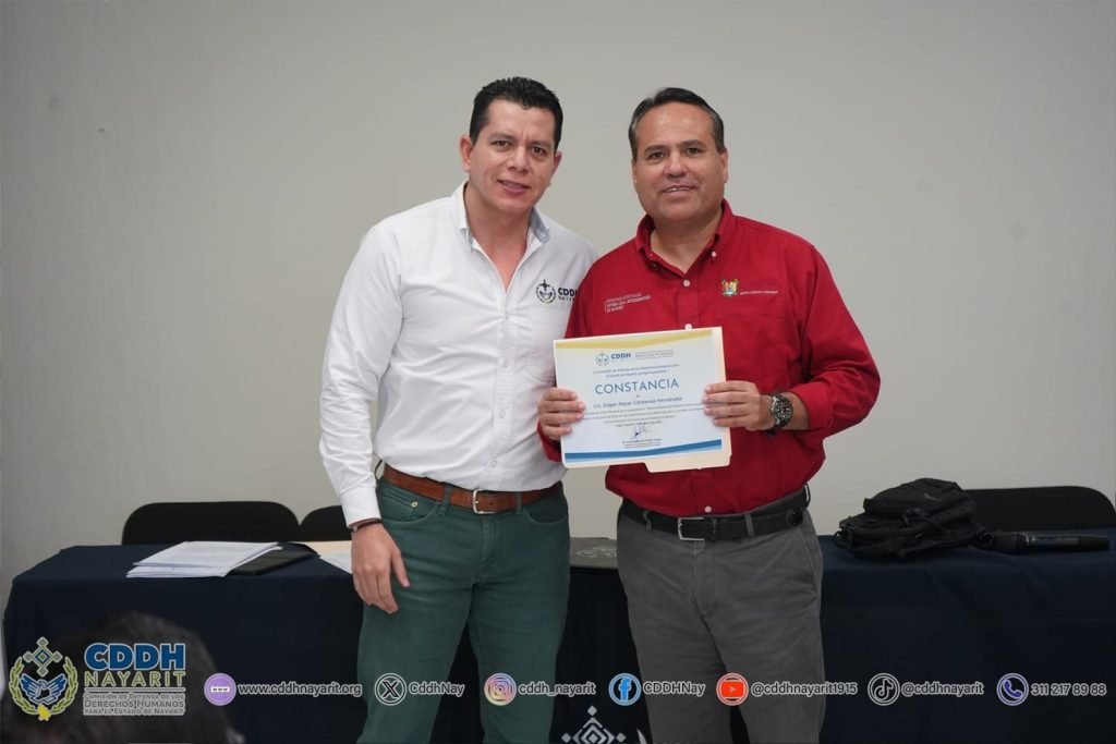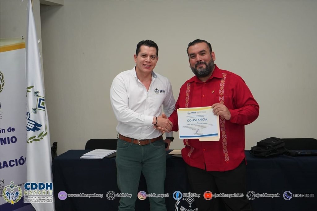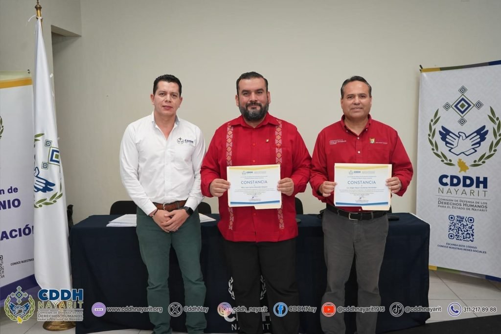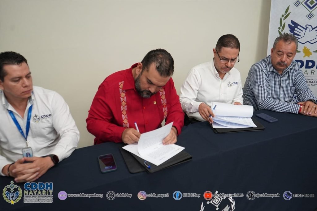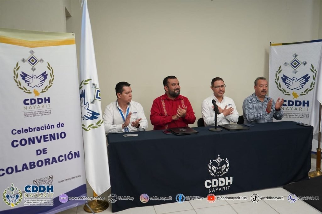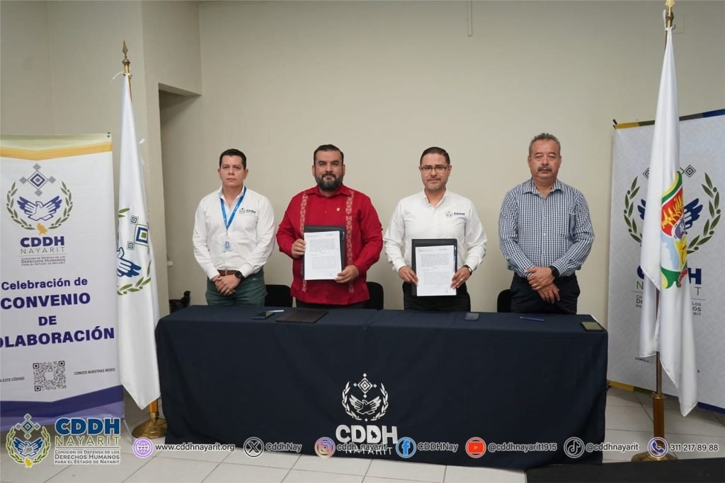 Con el propósito de establecer las bases de colaboración para la formación, capacitación, sensibilización y difusión en temas de ética pública, transparencia y, rendición de cuentas, la 𝗖𝗼𝗺𝗶𝘀𝗶ó𝗻 𝗱𝗲 𝗗𝗲𝗳𝗲𝗻𝘀𝗮 𝗱𝗲 𝗹𝗼𝘀 𝗗𝗲𝗿𝗲𝗰𝗵𝗼𝘀 𝗛𝘂𝗺𝗮𝗻𝗼𝘀 𝗽𝗮𝗿𝗮 𝗲𝗹 𝗘𝘀𝘁𝗮𝗱𝗼 𝗱𝗲 𝗡𝗮𝘆𝗮𝗿𝗶𝘁, a través de su presidencia, 𝘀𝘂𝘀𝗰𝗿𝗶𝗯𝗲𝗻, 𝗽𝗼𝗿 𝗽𝗿𝗶𝗺𝗲𝗿𝗮 𝘃𝗲𝘇, 𝗰𝗼𝗻𝘃𝗲𝗻𝗶𝗼 𝗱𝗲 𝗰𝗼𝗹𝗮𝗯𝗼𝗿𝗮𝗰𝗶ó𝗻 con la 𝗦𝗲𝗰𝗿𝗲𝘁𝗮𝗿í𝗮 𝗘𝗷𝗲𝗰𝘂𝘁𝗶𝘃𝗮 𝗱𝗲𝗹 𝗦𝗶𝘀𝘁𝗲𝗺𝗮 𝗟𝗼𝗰𝗮𝗹 𝗔𝗻𝘁𝗶𝗰𝗼𝗿𝗿𝘂𝗽𝗰𝗶ó𝗻 𝗱𝗲𝗹 𝗘𝘀𝘁𝗮𝗱𝗼 𝗱𝗲 𝗡𝗮𝘆𝗮𝗿𝗶𝘁, representada por su presidente, 𝗗𝗿. 𝗖𝗮𝗿𝗹𝗼𝘀 𝗔𝗹𝗯𝗲𝗿𝘁𝗼 𝗣𝗿𝗶𝗲𝘁𝗼 𝗚𝗼𝗱𝗼𝘆 𝘆 𝗲𝗹 𝗠𝘁𝗿𝗼. 𝗝𝘂𝗮𝗻 𝗖𝗮𝗿𝗹𝗼𝘀 𝗔𝗹𝘃𝗮𝗿𝗮𝗱𝗼 𝗩á𝘇𝗾𝘂𝗲𝘇, secretario técnico del Sistema Anticorrupción de Nayarit.