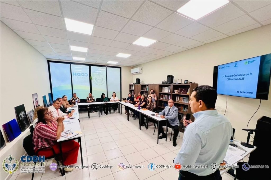๐๐ป ๐ฟ๐ฒ๐ฝ๐ฟ๐ฒ๐๐ฒ๐ป๐๐ฎ๐ฐ๐ถรณ๐ป ๐ฑ๐ฒ๐น ๐๐ฟ. ๐๐ฎ๐ฟ๐น๐ผ๐ ๐๐น๐ฏ๐ฒ๐ฟ๐๐ผ ๐ฃ๐ฟ๐ถ๐ฒ๐๐ผ ๐๐ผ๐ฑ๐ผ๐, ๐ฝ๐ฟ๐ฒ๐๐ถ๐ฑ๐ฒ๐ป๐๐ฒ de la #CDDH Nayarit, el secretario ejecutivo del organismo, ๐๐ฟ. ๐๐๐ฎ๐ป ๐ ๐ถ๐ด๐๐ฒ๐น ๐ฆ๐ฎ๐น๐ฐ๐ฒ๐ฑ๐ผ ๐ฅ๐ผ๐๐ฎ๐น๐ฒ๐ les diรณ la bienvenida y ๐ฝ๐๐๐ผ ๐ฒ๐ป ๐บ๐ฎ๐ฟ๐ฐ๐ต๐ฎ ๐น๐ผ๐ ๐๐ฟ๐ฎ๐ฏ๐ฎ๐ท๐ผ๐ ๐พ๐๐ฒ ๐๐ถ๐ฒ๐ป๐ฒ๐ป ๐ฐ๐ผ๐บ๐ผ ๐ผ๐ฏ๐ท๐ฒ๐๐ถ๐๐ผ ๐ถ๐บ๐ฝ๐๐น๐๐ฎ๐ฟ ๐น๐ฎ ๐ผ๐ฏ๐๐ฒ๐ฟ๐๐ฎ๐ฐ๐ถรณ๐ป ๐ ๐ฝ๐ฟรก๐ฐ๐๐ถ๐ฐ๐ฎ ๐ฑ๐ฒ ๐น๐ผ๐ ๐ฝ๐ฟ๐ถ๐ป๐ฐ๐ถ๐ฝ๐ถ๐ผ๐ ๐ฏ๐ถ๐ผรฉ๐๐ถ๐ฐ๐ผ๐ ๐ฒ๐ป ๐๐ป ๐บ๐ฎ๐ฟ๐ฐ๐ผ ๐ฑ๐ฒ ๐ฟ๐ฒ๐๐ฝ๐ฒ๐๐ผ ๐ฎ ๐น๐ผ๐ ๐ฑ๐ฒ๐ฟ๐ฒ๐ฐ๐ต๐ผ๐ ๐ต๐๐บ๐ฎ๐ป๐ผ๐, promover el debate de los dilemas bioรฉticos en la atenciรณn a la salud e investigaciรณn.