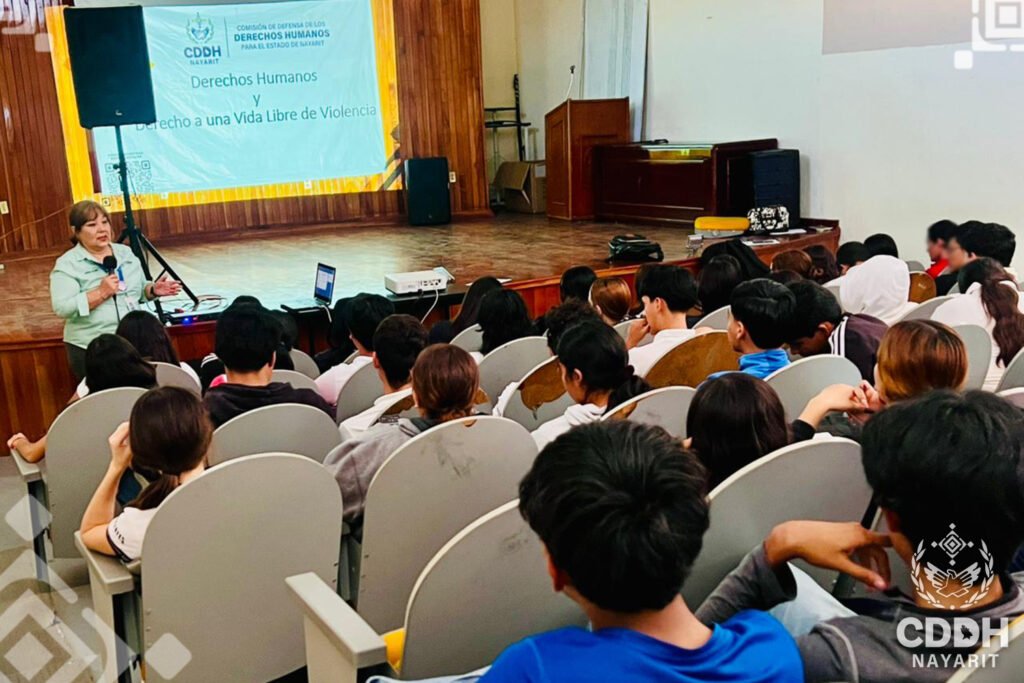 Con la finalidad de educar en materia de 𝗱𝗲𝗿𝗲𝗰𝗵𝗼𝘀 𝗵𝘂𝗺𝗮𝗻𝗼𝘀 la CDDH Nayarit capacita al alumnado de la Preparatoria número 1 de la Universidad Autónoma de Nayarit.