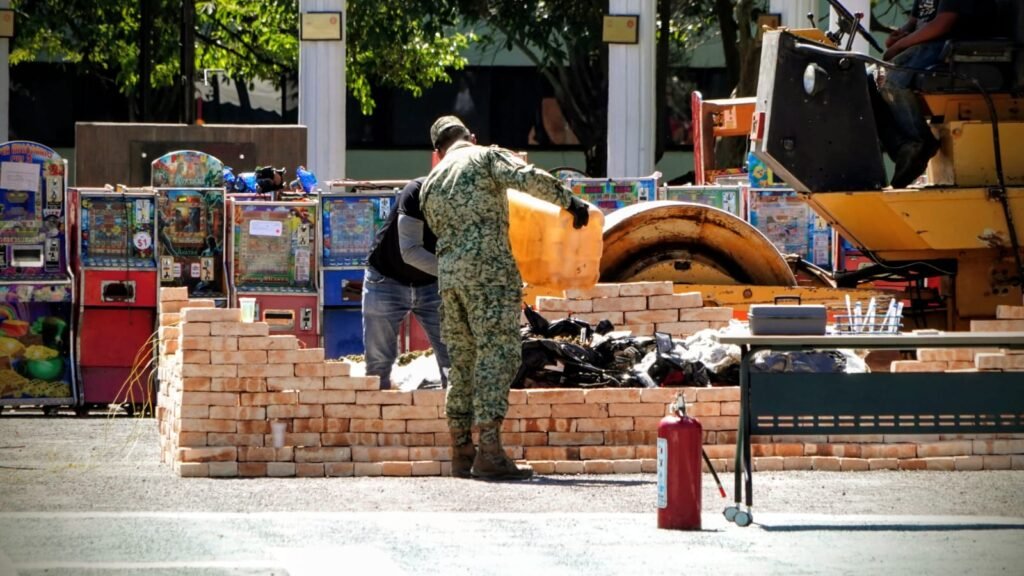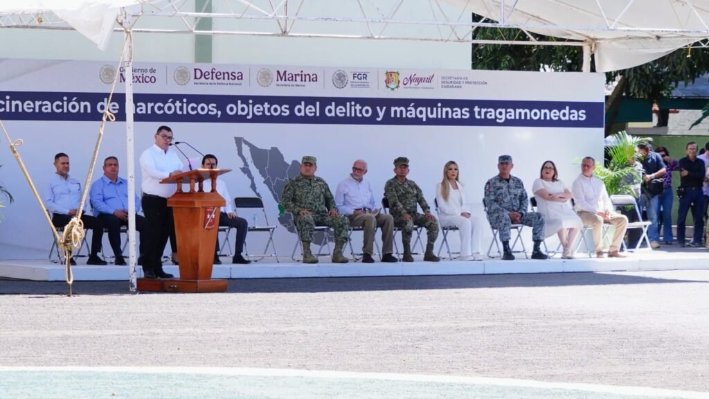 encabezado por el gobierno del estado, Miguel Ángel Navarro Quintero, el ombudsperson nayarita presenció la destrucción de las maquinas y narcóticos que representan una amenaza para la seguridad y salud de las familias en Nayarit.